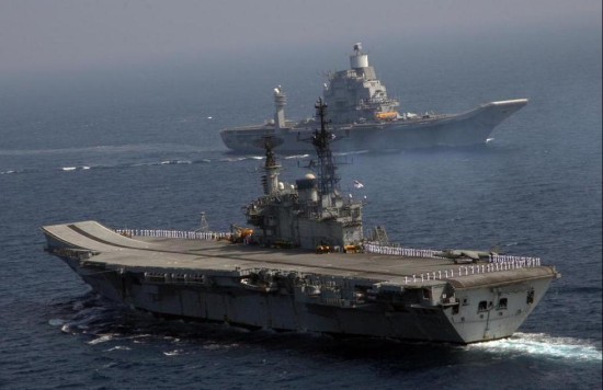 时间进入2015年,印度海军也重新拥有了双航母战斗群。近日,印度海军举行一场战役级实战演习。此次演习规模很大,印度海军出动了双航母战斗群及国产多型新锐战舰,如什里瓦克级护卫舰、加尔各答级神盾舰。演习中,两艘航母分别频繁起降包括米格29KUB在内的舰载战机,以检验印度海军航母部队战力。