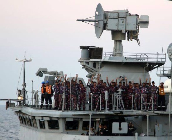 印度航母部队战斗人员舰上合影。
