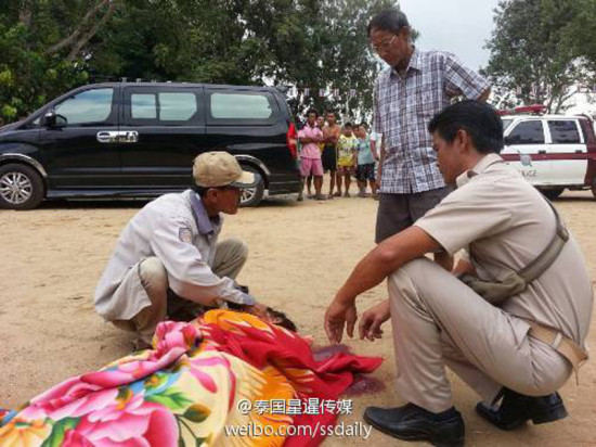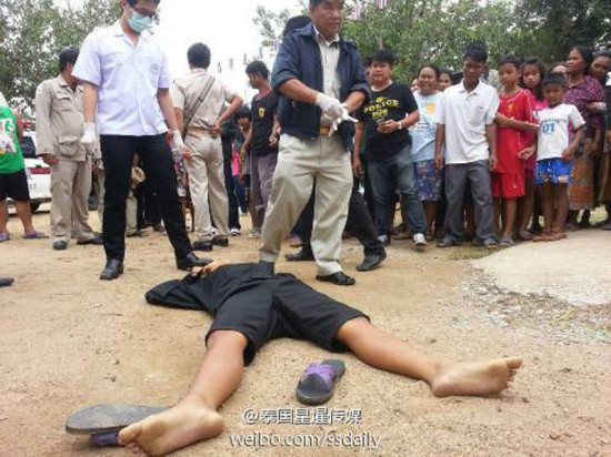 泰国北榄坡府一名年近六旬的出家人,单恋15岁少女,每日打电话纠缠骚扰,日前被少女严词拒绝后,老僧竟开枪将少女杀死。图为被杀死的15岁少女。