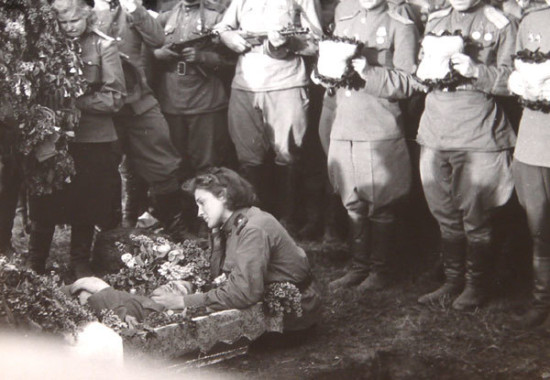 图为红军士兵为柏林战役最后一刻牺牲的战友送葬。