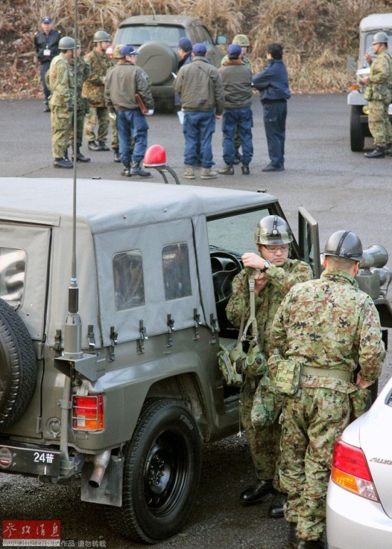 当地时间2015年2月13日报道,日本海上自卫队的一架小型直升机在鹿儿岛上空一带突然失去消息,机上3人下落不明。据媒体报道,当时该架直升机正在进行训练飞行,机上共有2名海上自卫队教官和1名学员。图为日本海上自卫队员在宫崎县艾比诺市JR真幸站为搜寻做准备。