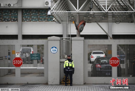 当地时间2015年3月5日,韩国首尔,美国驻韩国大使李柏特遭到不明身份男子袭击后,美国驻韩使馆加强警戒。