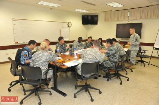11月13日,在美国夏威夷,中美两军进行救援减灾室内推演。新华社发(李晓伟摄)
