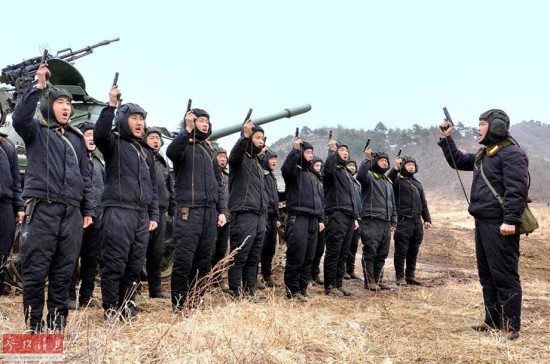 朝中社3月20日公布的照片显示,朝鲜最高领导人金正恩20日指导了人民军训练。