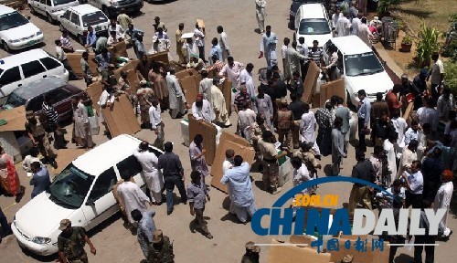 5月18日,卡拉奇43处投票站重新投票,巴基斯坦当局在投票站附近加强安全戒备。