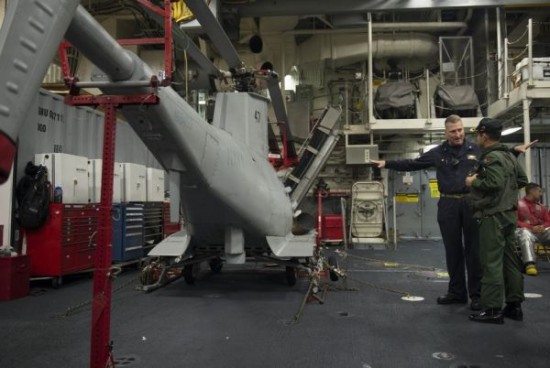 2014年11月20日沃斯堡号MQ-8B准备进机库。