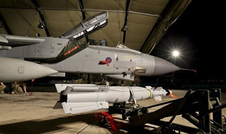 资料图片:2014年9月,英皇家空军“狂风”战机参与空袭“伊斯兰国”行动。(图片来源于网络)