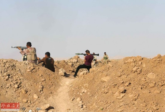当地时间2014年9月3日,伊拉克Al Bohassan,伊拉克什叶派武装在前线与“伊斯兰国”作战。萨达姆国破身亡以后,巴格达什叶派政权对伊拉克的控制,始终不及于库尔德族地区,即使对逊尼派影响力大的地区,控制力也相当有限。今年6月,逊尼派武装力量由叙利亚大举入境,又取得伊拉克境内逊尼派民众的大力支持,极端组织建立以后,不但同巴格达政权分庭抗礼,而且还对巴格达构成了巨大的威胁。