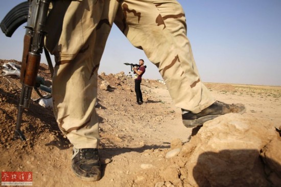 当地时间2014年9月3日,伊拉克Al Bohassan,伊拉克什叶派武装在前线与“伊斯兰国”作战。今年6月以来,包括伊斯兰国部队在内的伊拉克反政府武装先后攻占摩苏尔和提克里特,并相继占领北部和西部大片地区,伊拉克安全局势急剧恶化。