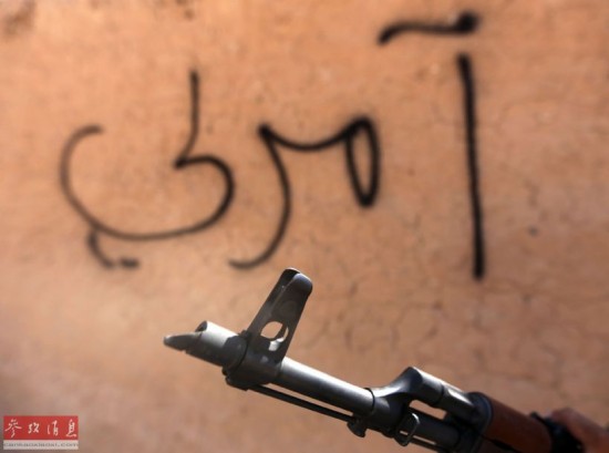 图为2014年9月3日,伊拉克Sulaiman Pek,库尔德武装人员驻守在“伊斯兰国”被烧毁的新闻办公室外。9月1日,萨拉赫丁省一个警方人士称,伊拉克部队、库尔德部队等联合对苏莱曼贝克发起反攻,“目前该镇已处于政府军的控制之下”。