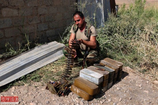 8月17日,在伊拉克尼尼微省的摩苏尔水坝附近,一名库尔德武装士兵检查弹药。据伊拉克官方电视台18日报道,伊政府军和库尔德武装当天联手夺回被极端组织占领的伊拉克最大的摩苏尔水坝。新华社美联