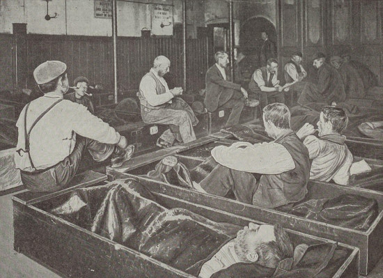 这是当时伦敦市内的众多救济所之一,相对于露宿街头来说,还是较为干燥温暖的。但是救济所的床设计得和“棺材”一样,又小又硬,也只能勉强称得上是“容身之所”。