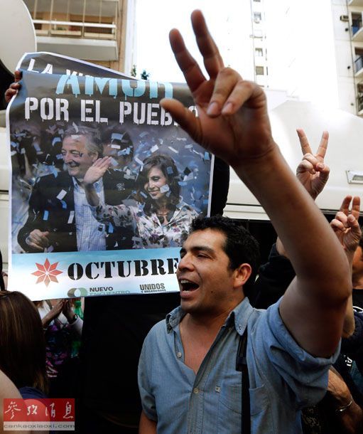 10月8日,在阿根廷布宜诺斯艾利斯,阿总统克里斯蒂娜的支持者在其手术成功后庆祝。新华社/路透