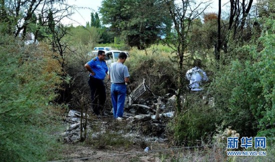 3月10日,在阿根廷拉里奥哈省,警方在事故现场调查。两架直升机当地时间9日下午在阿根廷拉里奥哈省拍摄电视节目时相撞坠毁,目前已造成10人死亡,其中包括8名法国人和2名阿根廷人。新华社/美洲通讯社