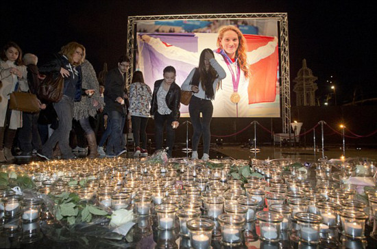 图为民众悼念在事故中丧生的奥运会女子游泳冠军卡米亚·穆法特。
