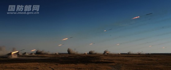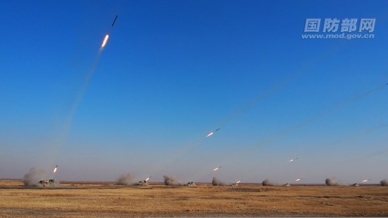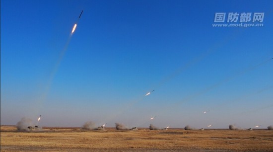 解放军联合行动—2014E军演场面大 导弹火箭弹满天飞。