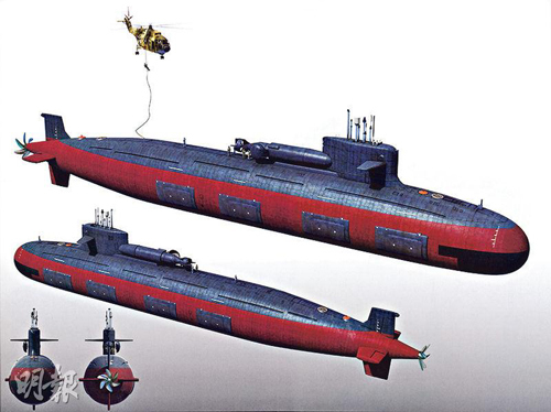 资料图片:中国093T型特战核潜艇想象图。(图片来源:《明报》网站)