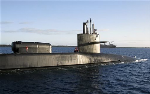 资料图片:美俄亥俄级核潜艇艇体后部的凸出物就是“干式甲板换乘舱”(图片来源于网络)。