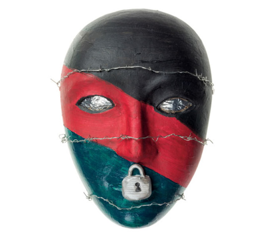 面具上的图案象征了死亡、伤痛及爱国主义等主题。