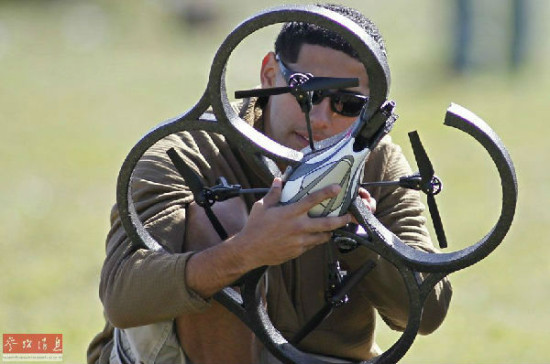 2011年11月11日,在美国佛罗里达州的皮尔斯堡,一名海豹突击队技术人员在调整无人机设备。新华社/路透