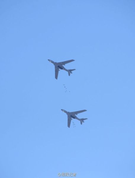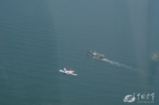 9月11日,空军某型教练机首次海上试训,超低空飞行。