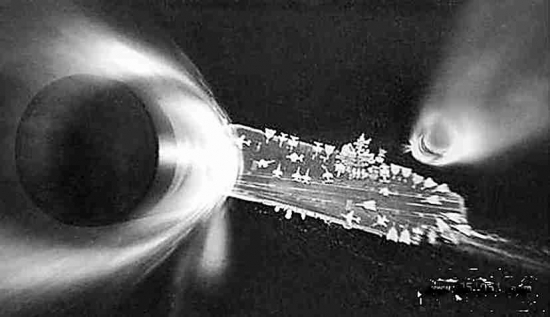 资料图片:中国反航母导弹攻击航母想象图。(图片源于网络)