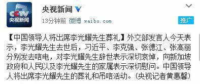 【延伸阅读】外交部:中国领导人将出席李光耀葬礼和吊唁活动