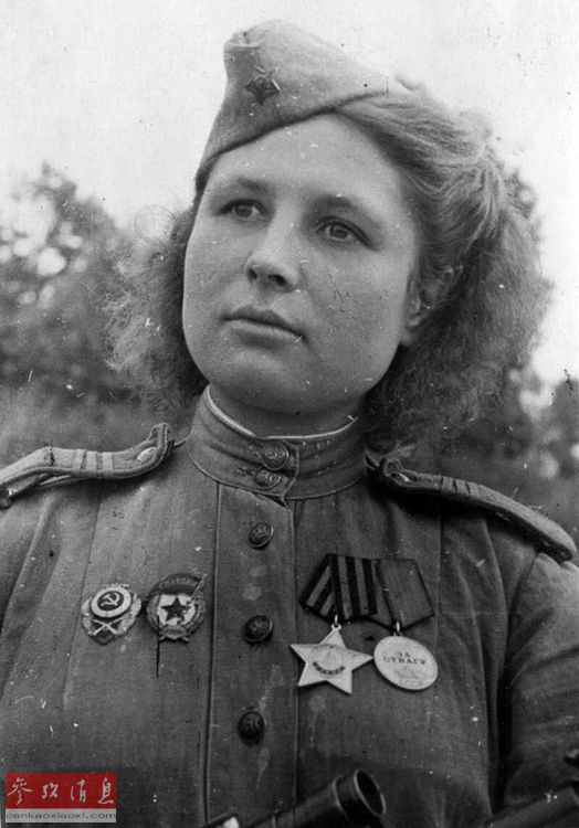 图为苏军二战女狙击手头号王牌柳德米拉 .帕夫里琴科戎装照。