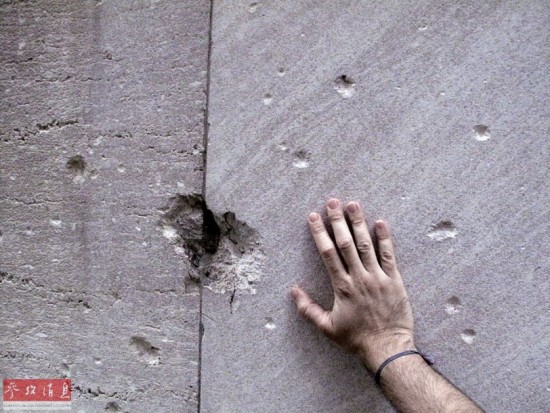 资料图片:1920年爆炸案留下的痕迹至今都能在华尔街23号楼体上清晰可见。