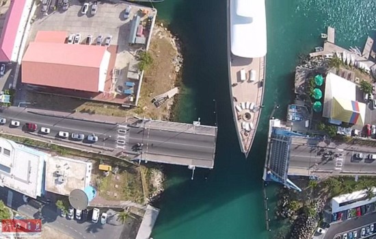 据英国《每日邮报》2月26日报道,摄影师布瑞恩·莫斯顿(Brian Muston)用他的无人飞机拍下了这令人神经紧绷的画面,画面中乔布斯价值1.2亿美元(约合7.5亿元人民币)的超级游艇正在通过56英尺宽的辛普森湾大桥出口前往圣马丁水域。乔布斯在他的朋友,甲骨文公司创始人之一——拉里·埃里森(Larry Ellison)的游艇上度过了几个夏日假期后,他购买了这艘名叫Venus的游艇。图中宽约39英尺(1英尺等于0.3048 米)的Venus正在离开辛普森湾泻湖,56英尺宽的桥身打开了55.7英尺宽的出口,两边分别留下了仅8英尺宽的空隙。编译/熊婉君(参考消息独家编译,未经授权 不得转载)