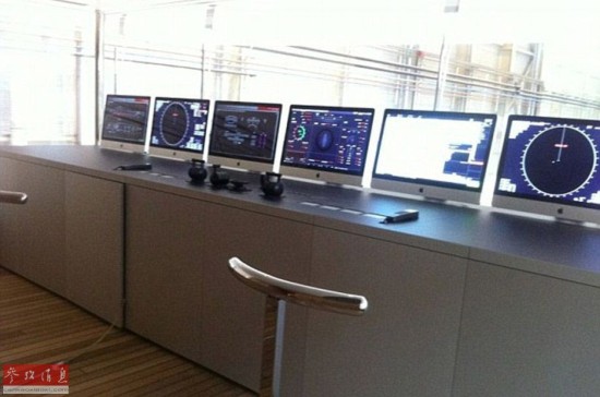 豪华游轮的内部看上去就像是苹果商店,至少配备了七部苹果电脑用于导航。