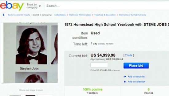 网友拍卖乔布斯高中纪念册 长发似摇滚乐手(图)