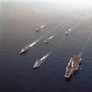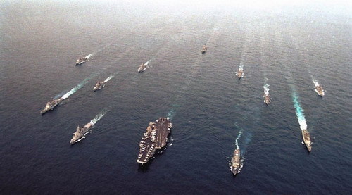 资料图片:美国航母编队在亚太炫耀武力。(图片源于网络)