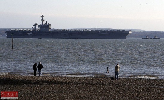 10万吨的美国航母由于体积“太大”无法航行到皇家海军的朴茨茅斯造船厂,被迫停靠在戈斯波特的斯托克斯湾。在五天的访问时间里,预计有超过5000名海员来到朴茨茅斯,这将刺激当地的经济增长。