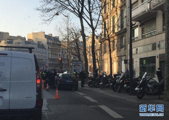 3月23日,警察在法国巴黎街头处罚违规车辆(手机拍摄)。法国巴黎警察局3月23日在首都巴黎及周边3个省份临时采取车辆单双号限行等紧急措施,应对空气严重污染现象。近一周来,受无风无雨天气影响,由道路交通、春季农作物播种施肥及工业生产等人类活动排放到大气中的各类污染物难以驱散,造成巴黎大区及法国北部多处地区空气质量明显下降。新华社记者应强摄