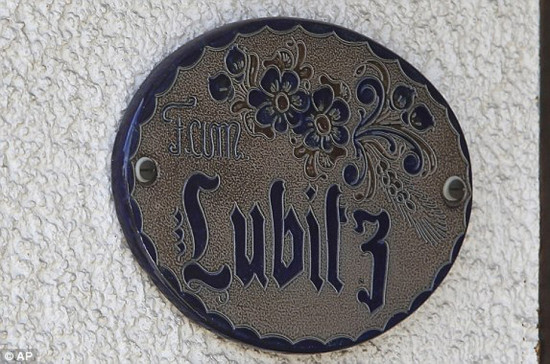 飞行员Lubitz家门前的标牌。2013年他刚刚接受了600小时的飞行训练。
