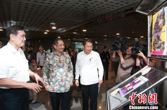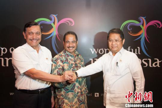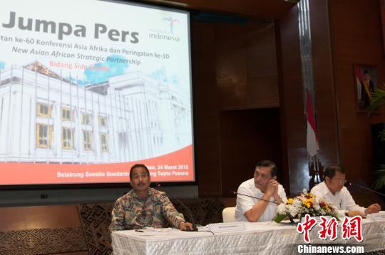 印尼旅游部长叶海亚·阿里耶夫(中)24日在此间举行的新闻发布会上称,印尼旅游部下月将举行一系列活动庆祝亚非会议60周年。 顾时宏 摄