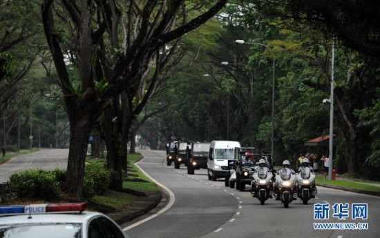 当日,新加坡建国总理李光耀的国葬仪式在新加坡国立大学文化中心举行,约2200名社会各界人士和各国政要出席。国葬仪式之后,李光耀的灵柩被运往新加坡万礼火化场举行私人葬礼。新华社发(邓智炜摄)