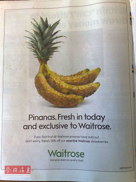 在2009年愚人节那天,英国著名连锁超市维特罗斯宣布引进了一种非常新奇的“混血”水果———菠萝蕉。他们在广告上写道:“菠萝蕉仅于今天、仅在维特罗斯超市有售。如果你被告知所有菠萝蕉已经被卖光了,请不要担心,今天我们的草莓全部是半价。”