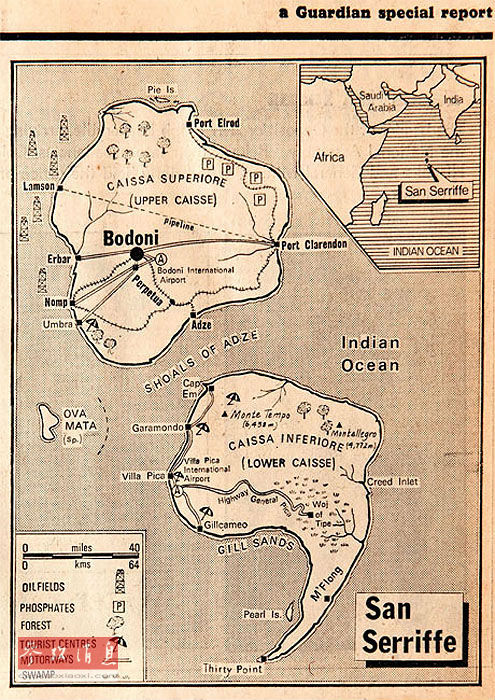 1977年4月1日,英国《卫报》在推出了一份长达7页的副刊,详细描述了印度洋上一个从未被人发现过的岛屿。这个被取名为San Serriffe的岛屿外形就像个分号,由Up p er Caisse和Low er Caisse两部分组成。很多读者都被这个世外桃源般的小岛所吸引,纷纷打电话来询问具体位置到底在哪儿。实际上,这个岛屿完全就是《卫报》编辑们虚构出来的,所有的命名都跟报纸印刷业务有关。San Serriffe指的是“无衬线字体”(Sans-serif),而Up p er Caisse和Low er Caisse分别说的是“大写字母盘”和“小写字母盘”,这些全都是印刷术语。