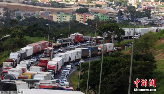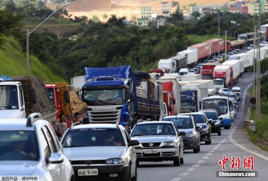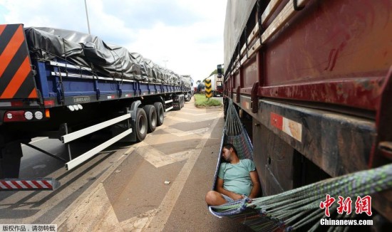 【延伸阅读】 巴西卡车司机罢工拥堵高速 车外挂吊床睡觉
