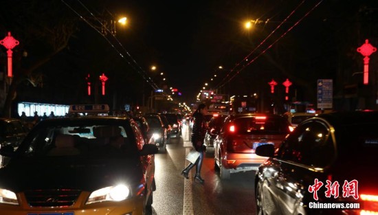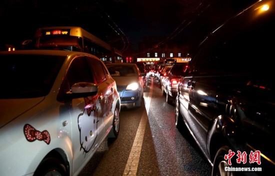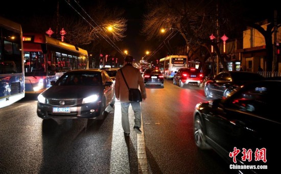 2月11日农历腊月二十三,是中国传统的小年。受到4、9限行日和节前交通的双重影响,当日北京晚高峰持续时间长,路面交通压力大。中新社发 杨可佳 摄