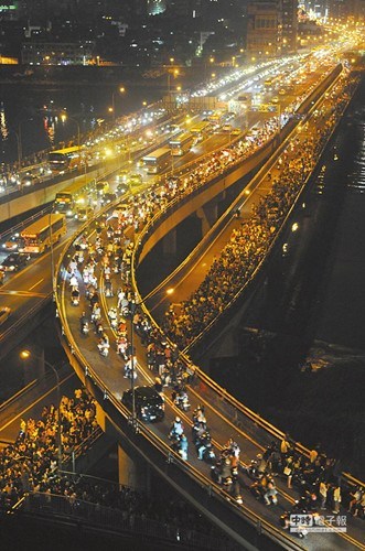 台北桥上一遇到有举办烟火施放等大型活动时,常出现车潮、人潮挤得水泄不通的情景。图自台湾旺旺中时报系