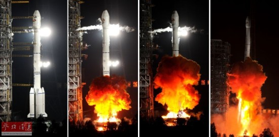 12月21日,载有玻利维亚通信卫星的长征三号乙运载火箭点火发射(拼版照片)。新华社记者 燕雁 摄