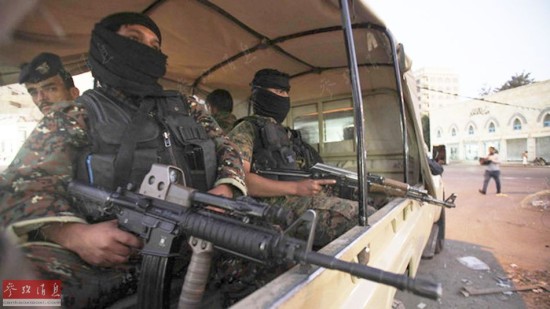 胡塞武装不仅与本国政府军作战,还敢对西方军队动武。据合众国际社2月11日报道,萨那机场一名未透露姓名的官员称,胡塞武装强占了停在机场的美国大使馆车辆,还夺取了正在撤离的美国海军陆战队的武器。图为萨那街头,身着警察制服、头戴黑面罩的胡塞武装人员,请注意其中一人手持的美制自动步枪,保不齐就是从美军手里缴获的。