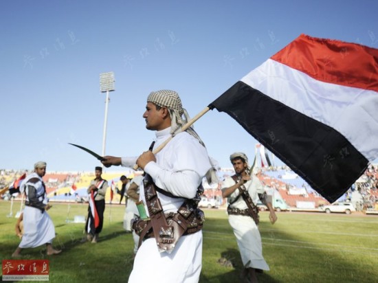有分析人士指出,在大量吸收前政府军警加入和招募支持者后,胡塞武装(包括支持者在内)总兵力已达10万至12万之众。图为2015年2月7日,胡塞武装的支持者在首都萨那的一座体育馆里跳舞庆贺。