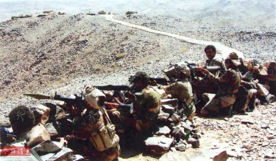 胡塞武装(Houthis)是也门境内的一支什叶派反政府武装。上世纪70年代,出生在也门北部萨达地区的侯赛因·胡塞创建了“青年信仰者”组织,也即后来胡塞武装的前身。2004年,由于与执政的萨利赫当局水火不容,侯赛因·胡塞率众发动叛乱。自此,萨达省沦为战场。图为2009年,坚守阵地准备与胡塞武装作战的也门政府军。