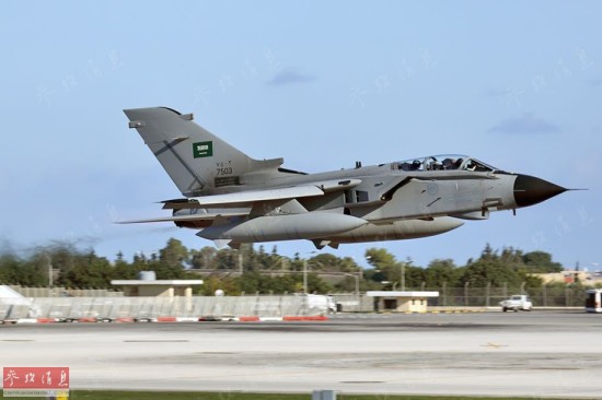 当地时间3月25日夜间,沙特率领多国联军对也门胡塞武装发动了代号为“决战风暴”的军事行动,沙特为此部署了100架战机、15万士兵和部分海军。图为沙特空军“狂风”战机。