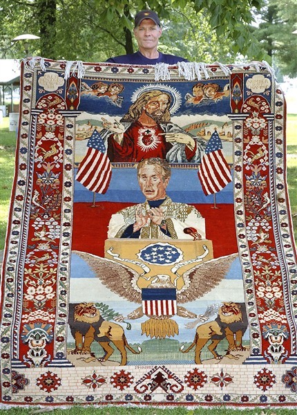 资料图片:编织有小布什形象的阿富汗地毯。(图片源于网络)
