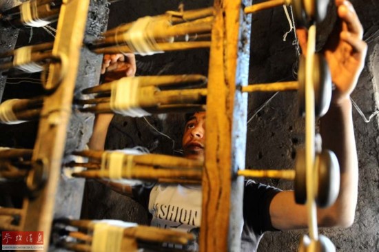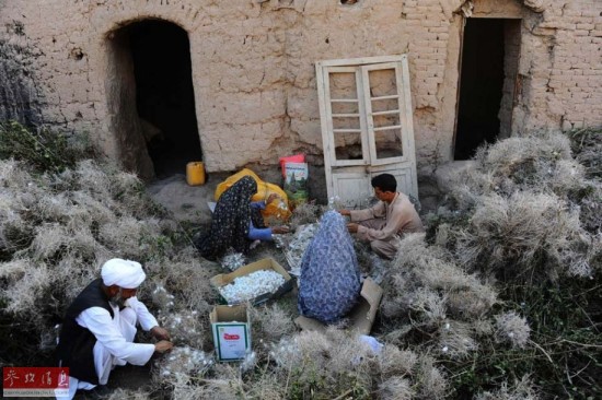 2014年5月22日拍摄的照片显示,阿富汗民众在整理编织毛毯用的蚕丝。阿富汗毛毯是该国最重要的出口物资之一。阿富汗曾有600万人直接或间接从事毛毯编织工作,主力军为北部的妇女与儿童,而如今编织工人数量骤减。在一家非营利性机构的合作下,阿富汗赫拉特农业部向多个地区供应了5050箱蚕蛹,试图借此振兴本国的蚕丝生产与加工行业。目前参加42500名阿富汗妇女与她们的家人参加了这项合作计划,一来可借此维持生计,二来帮助本国生产商进军国际市场。据了解,一块蚕丝或羊毛地毯的售价可达150美金至数千美金不等。